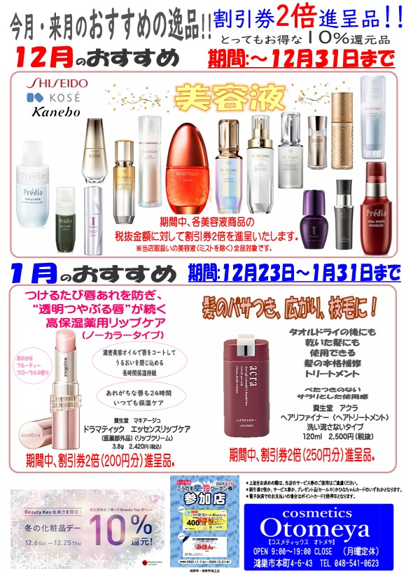 『確かなカウンセリングをリアルな空間で。あなたの肌にあなたのコスメティックを提案します』 化粧品専門店として、みなさまの『キレイになりたい』『若々しくいたい』などの思いに対して、カウンセリングやレッスン、商品提案、美容サービス、フェイシャルエステなどを通してサポートをさせていただいております。 あなたのお悩みやお化粧のご不明な点などお気軽にご相談ください。 みなさまの居心地の良いお店になれますように... キレイを楽しめる 笑顔あふれる化粧品専門店【コスメティックス オトメヤ】です。